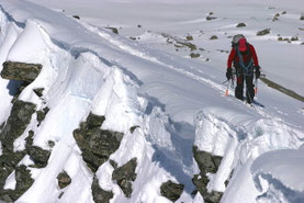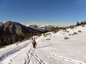 Déplacements en raquettes ou skis de randonnée et équipement hiver car sorties sur le terrain quel que soit le temps.